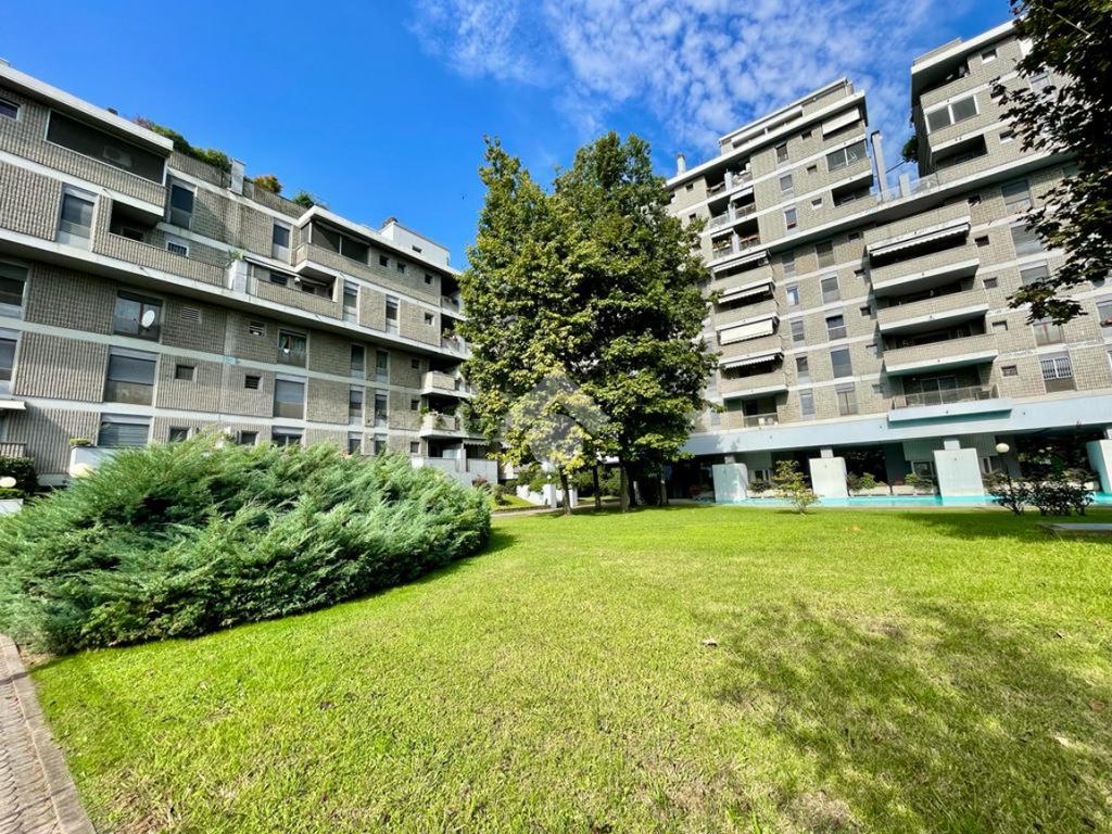 All'interno di un signorile ed esclusivo contesto residenziale dotato di portineria diurna, immerso nel verde ed impreziosito da ampi spazi condominiali ottimamente mantenuti, tra cui due fontane a decoro, in vendita un appartamento suddiviso in tre locali.