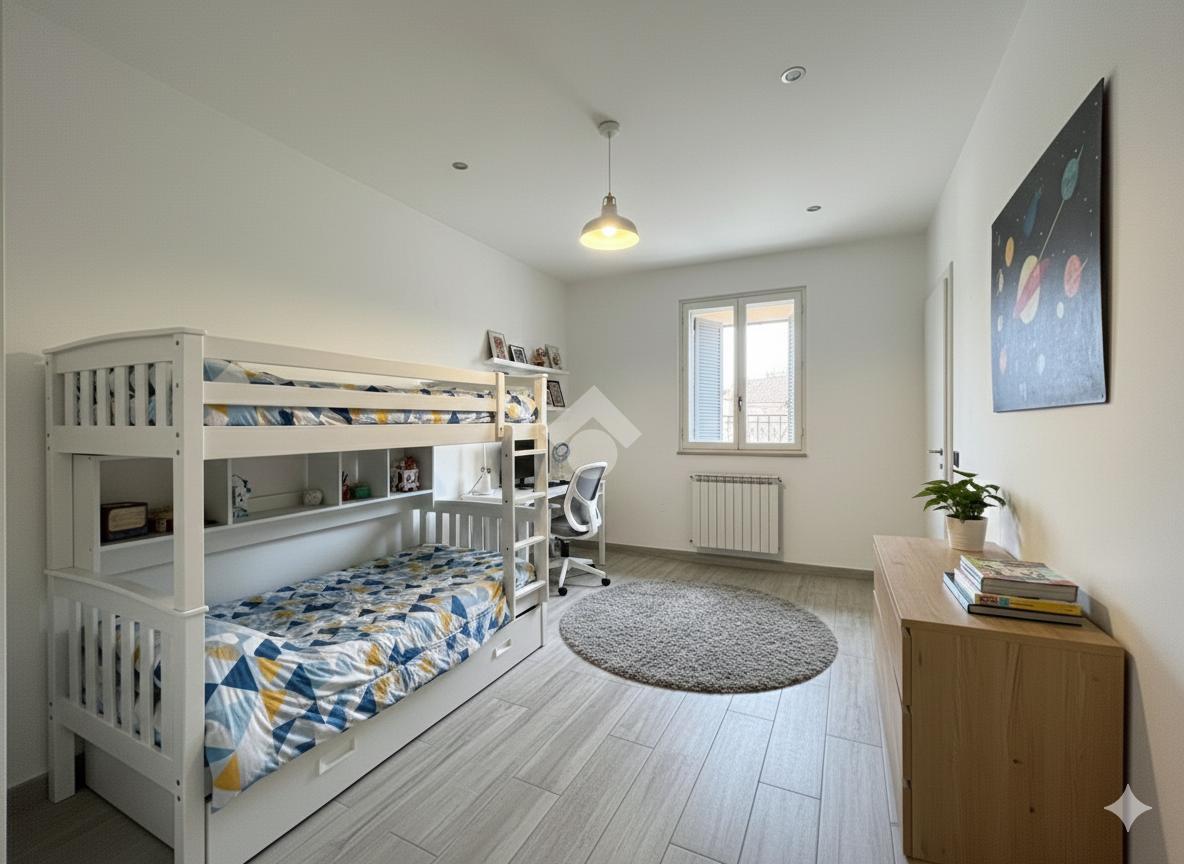 L’appartamento è composto da ingresso indipendente su zona giorno con cucina a vista, pratico ripostiglio e bagno finestrato con box doccia. Proseguendo nella zona notte troviamo due camere da letto matrimoniali, ben distribuite e luminose.